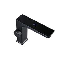 マットブラック真鍮製LEDディスプレイ付き単穴洗面台蛇口、浴室トイレ寝室用赤外線センサー搭載